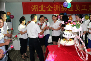 全洲集团总部、全洲房地产公司以及东山头华中科技创新产业园、汉川全盛置业公司7-8月份生日员工等50多人参加了这场别开生面的聚会。