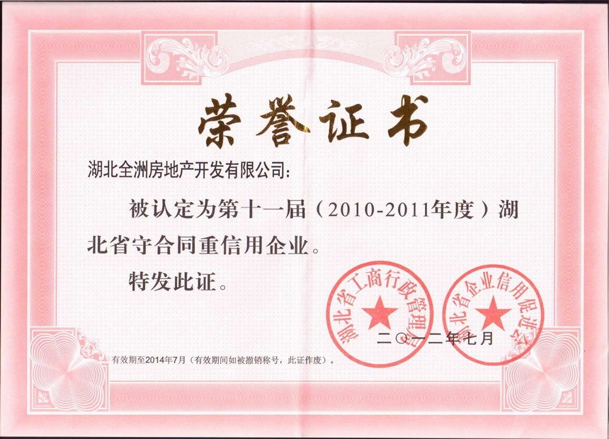 12年第十一届(2010-2011年)湖北省守合同重信用企业