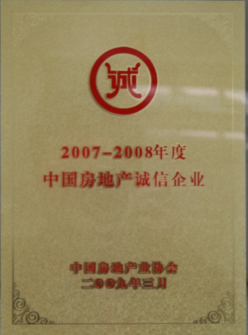 09年2007-2008年度中国房地产诚信企业奖牌